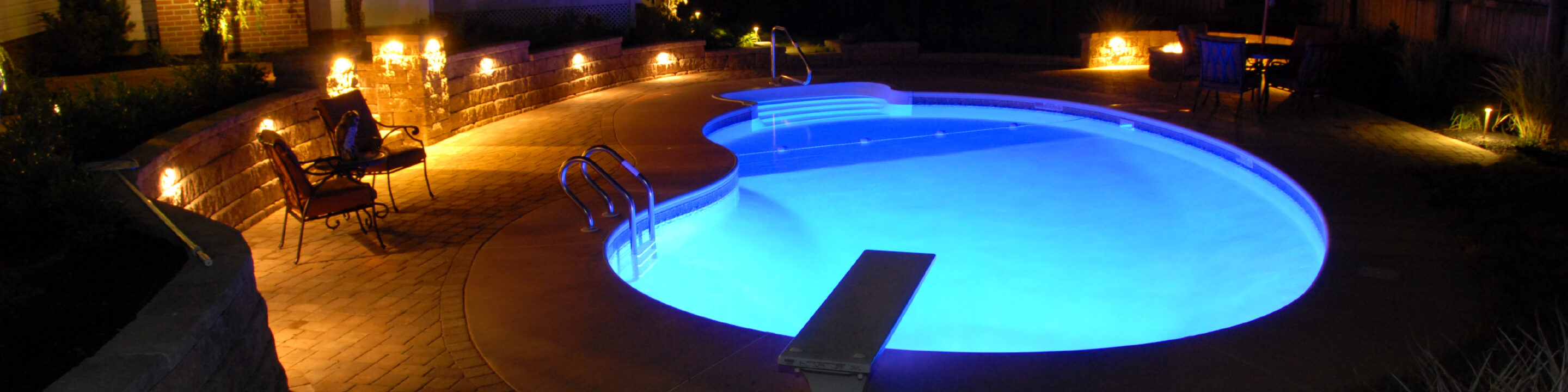 Enhance your outdoor space with a breathtaking backlit, two-tier pondless waterfall that combines elegance and tranquility. This expertly crafted feature is accented with mulch, strategically placed lighting, and lush plants, creating a serene backyard paradise. Whether you’re looking to add ambiance or a focal point to your landscape, our hardscaping services bring beauty and function to your outdoor retreat.